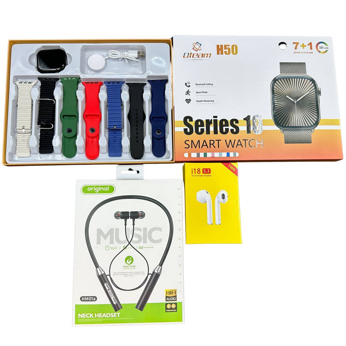 ساعة كاملة متكامل ساعة سيريس وسماعة ايربودز وسماعة طوق 🔥